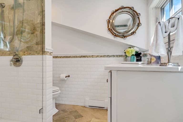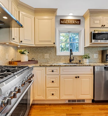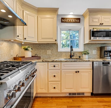 New Kitchen with high-end, stainless steel appliances, quartz counters, island seating for 8 and dining for 10